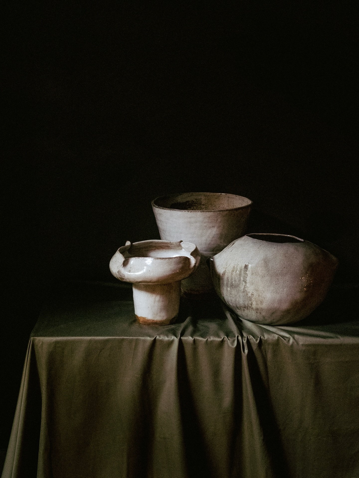 View fullsize Some pieces from the last woodfiring of the year. I mostly experimented this time around and single fired (2) or raw glazed (1). The platter with the shells was fired raw and without any glaze so the effects are purely from the ash and woodfiring. Ca